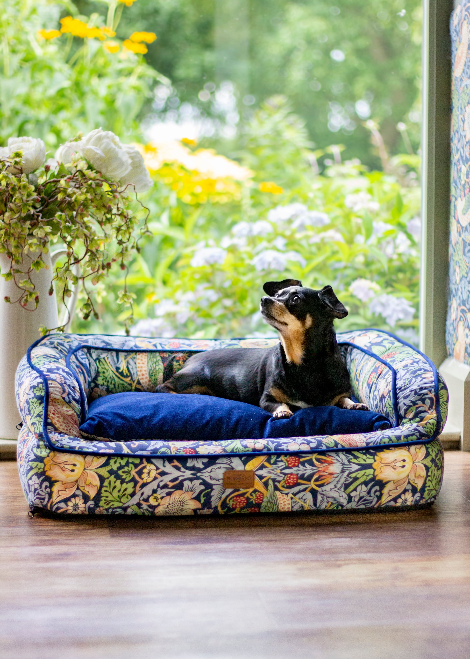 Crafted from a hard-wearing yet super-soft cotton blend, this bed provides pets with ultimate comfort. With supportive high sides and memory foam base, this orthopaedic bed is the epitome of luxury. Comprising a reversible inner cushion with contrasting velvet reverse, a fully removable cover and anti-slip base. Presented with a high-quality hang tag.